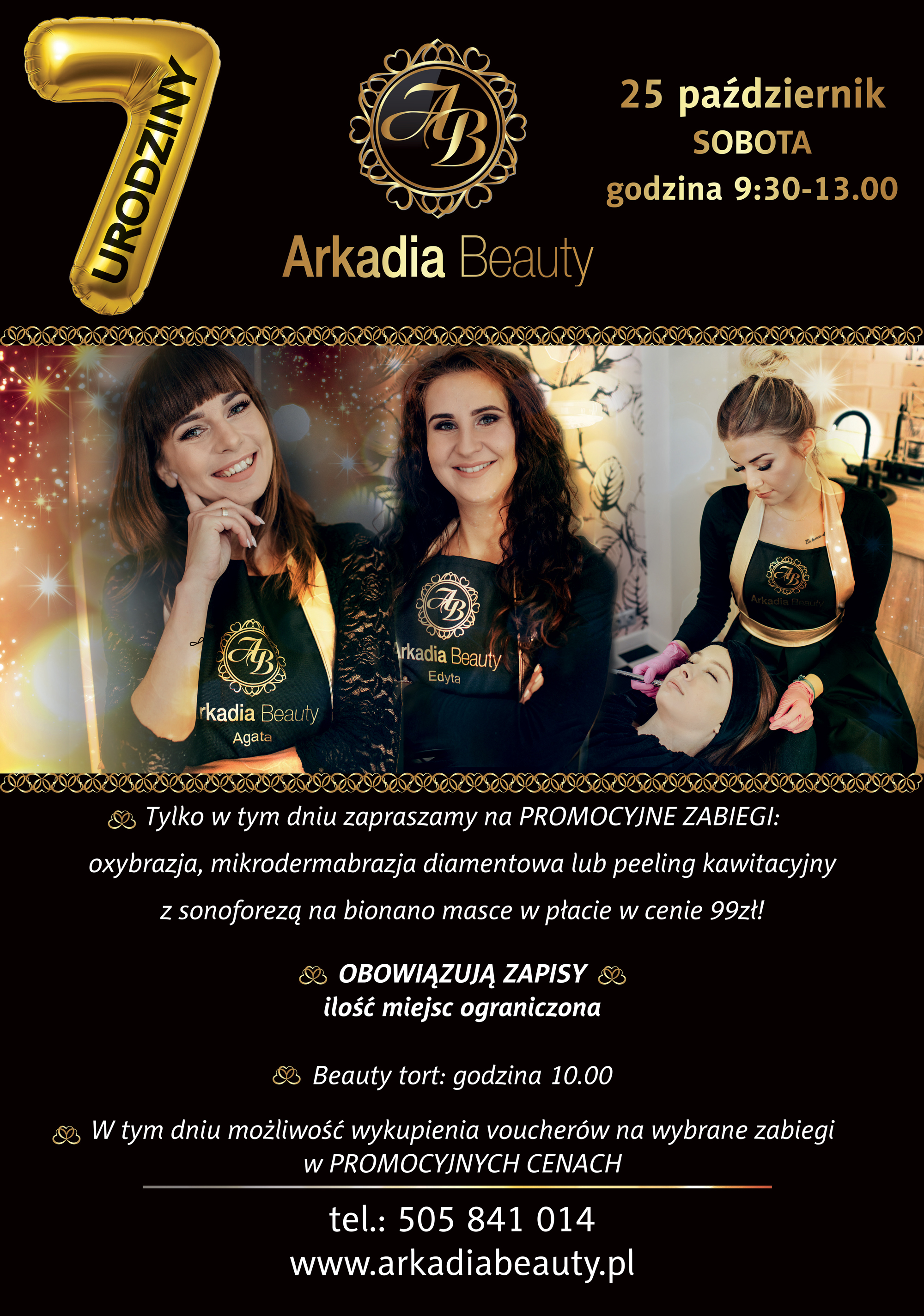 W sobotę 25 października 2025 zapraszamy na wspólne świętowanie już SIÓDMYCH urodzin naszego salonu pod szyldem Arkadia Beauty